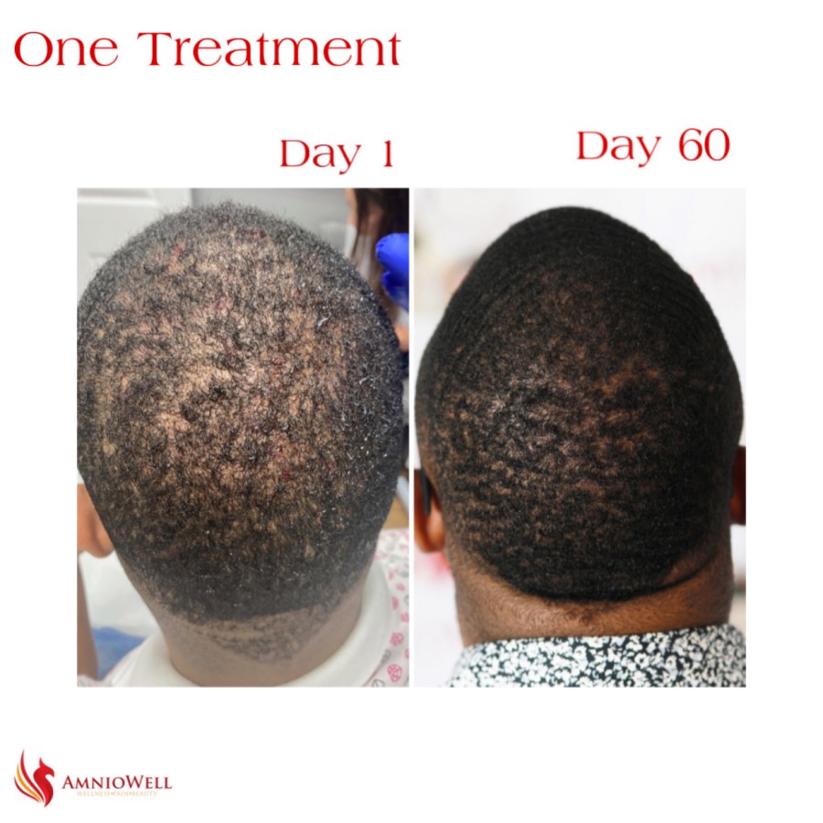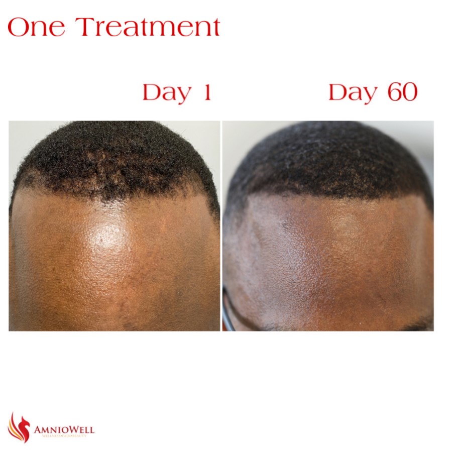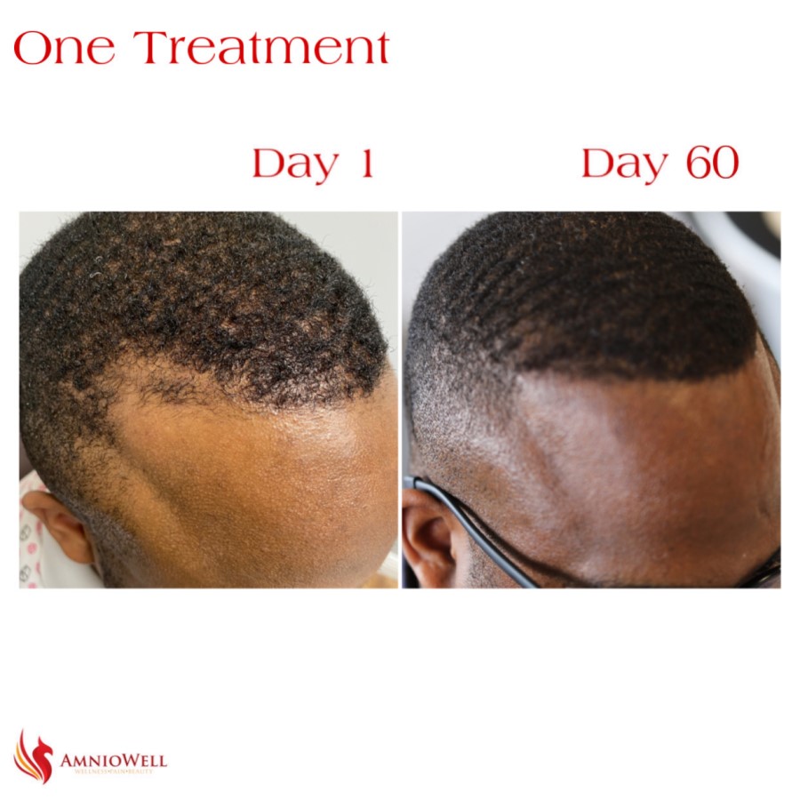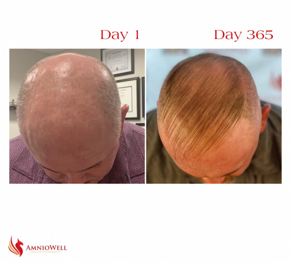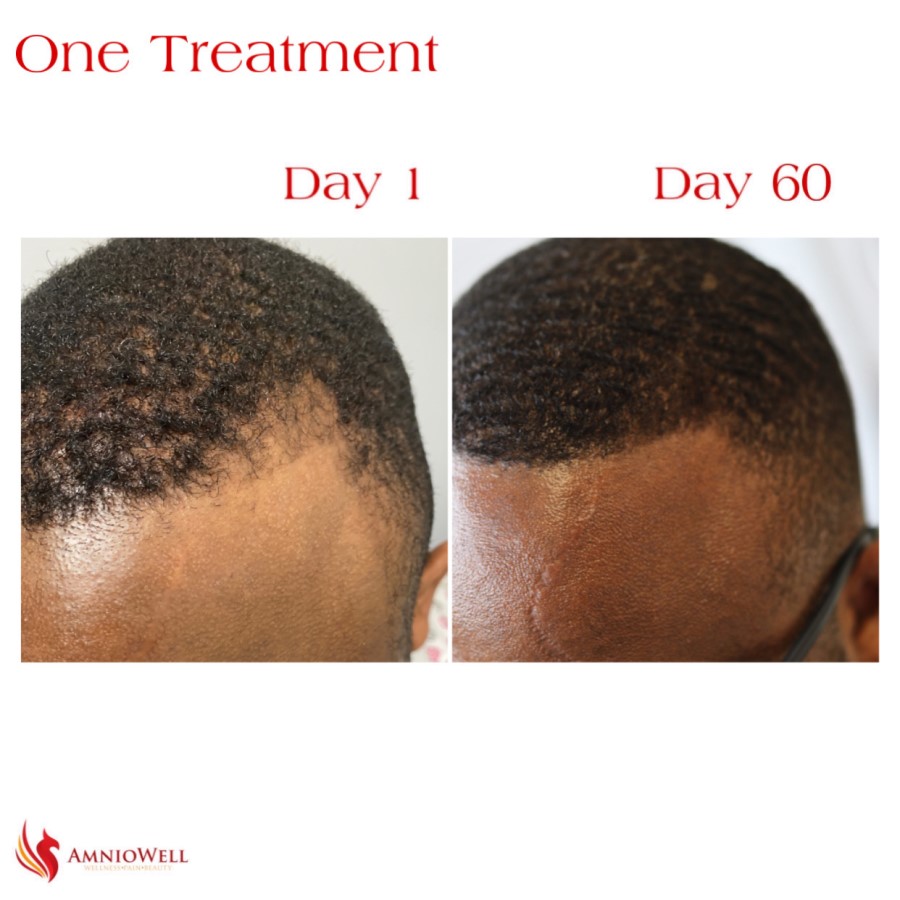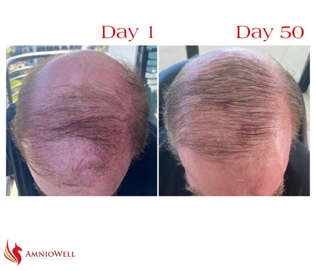 “My hair was always thin and 8 years ago I went almost completely bald due to hair loss. The AmnioWell(AF) product helped me fix a scar on my face, so I was open to try it to regrow hair. The results were more than I thought possible in a single hair treatment!”